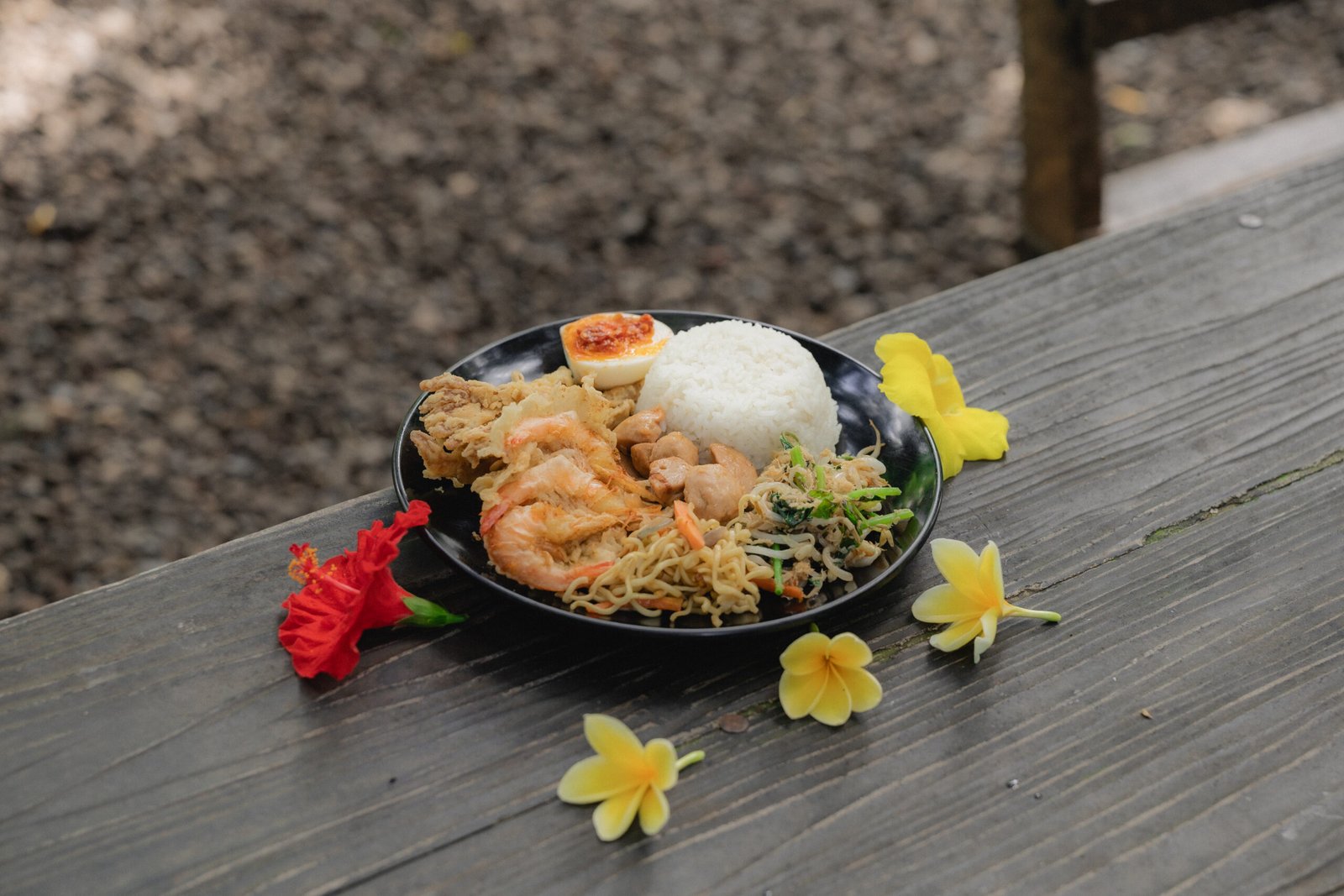 Customizable plate of steamed rice served with your choice of traditional Indonesian side dishes.