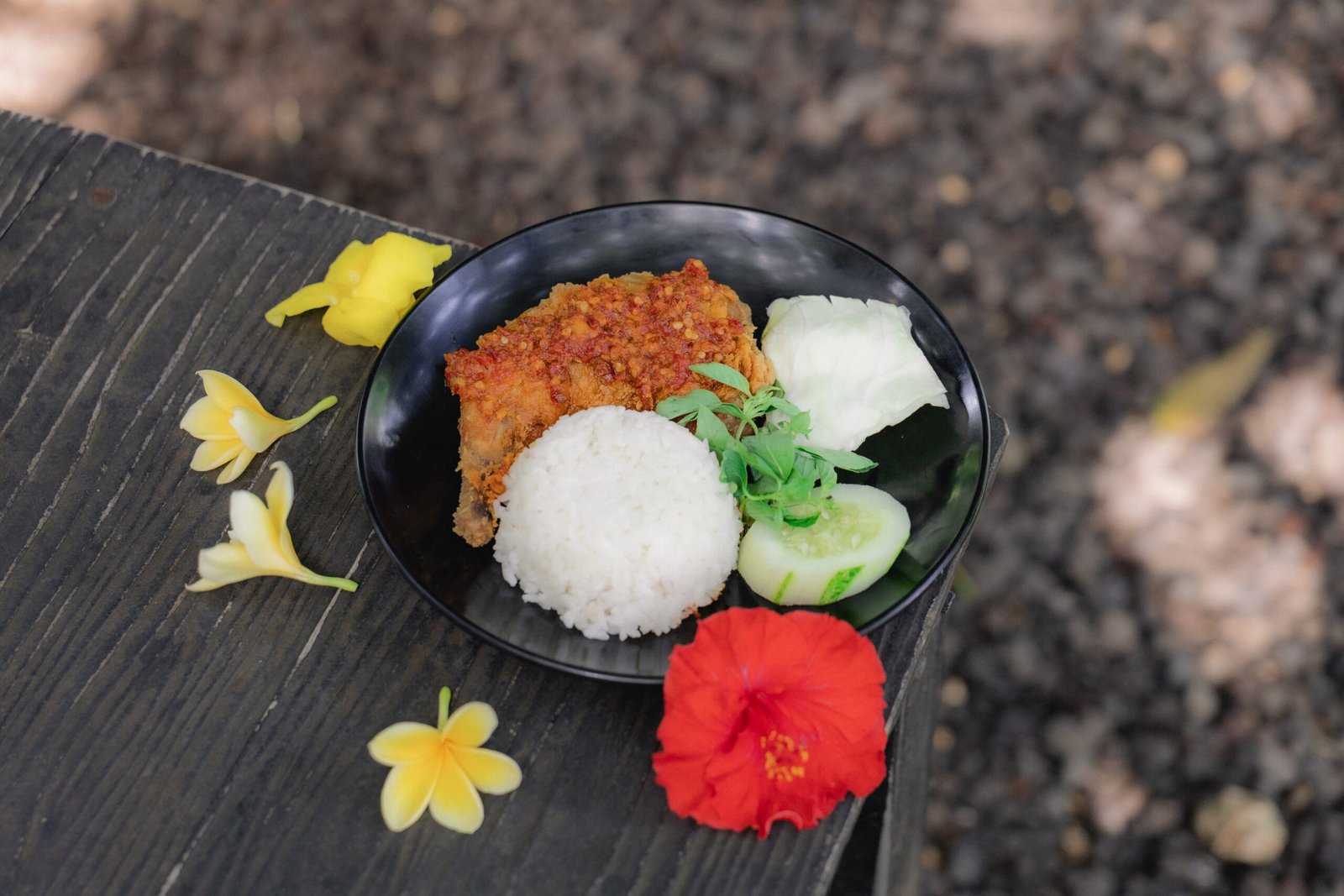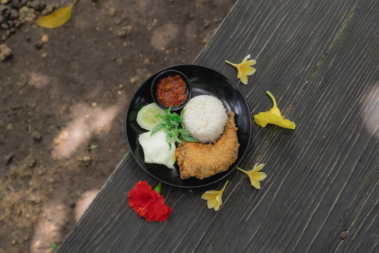 Fried Chicken Flour, Sambal, Fresh Vegetables.